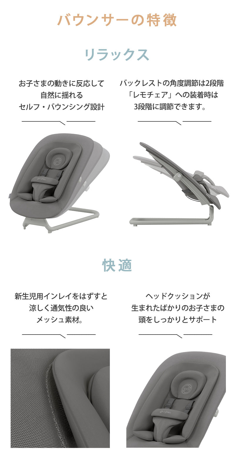 ※別売りのレモバウンサーを装着して使用時は、新生児~使用可能
