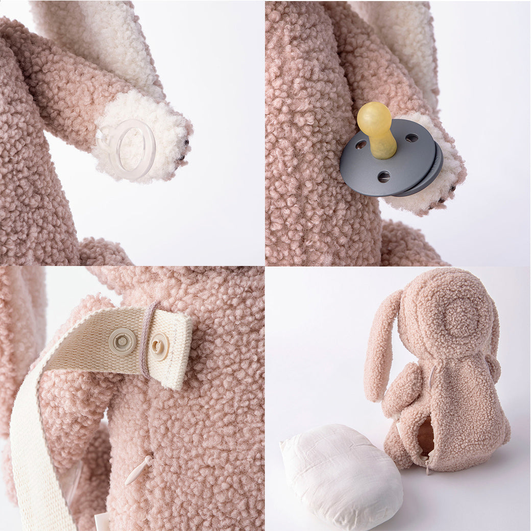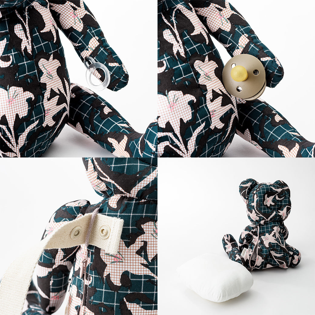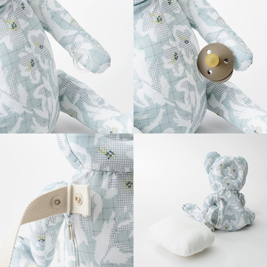 ぬいぐるみ(表地) :綿100%(バニー アイボリー/バニー リリー ピンク/ベア リリー ミント/ベア リリー ブラック) :ポリエステル100%(バニー クラウド/バニー ラベンダー/ベア アーモンド/ベア ミルク) ぬいぐるみ(詰め物):ポリエステル100% 肩ヒモ部分:綿100% |