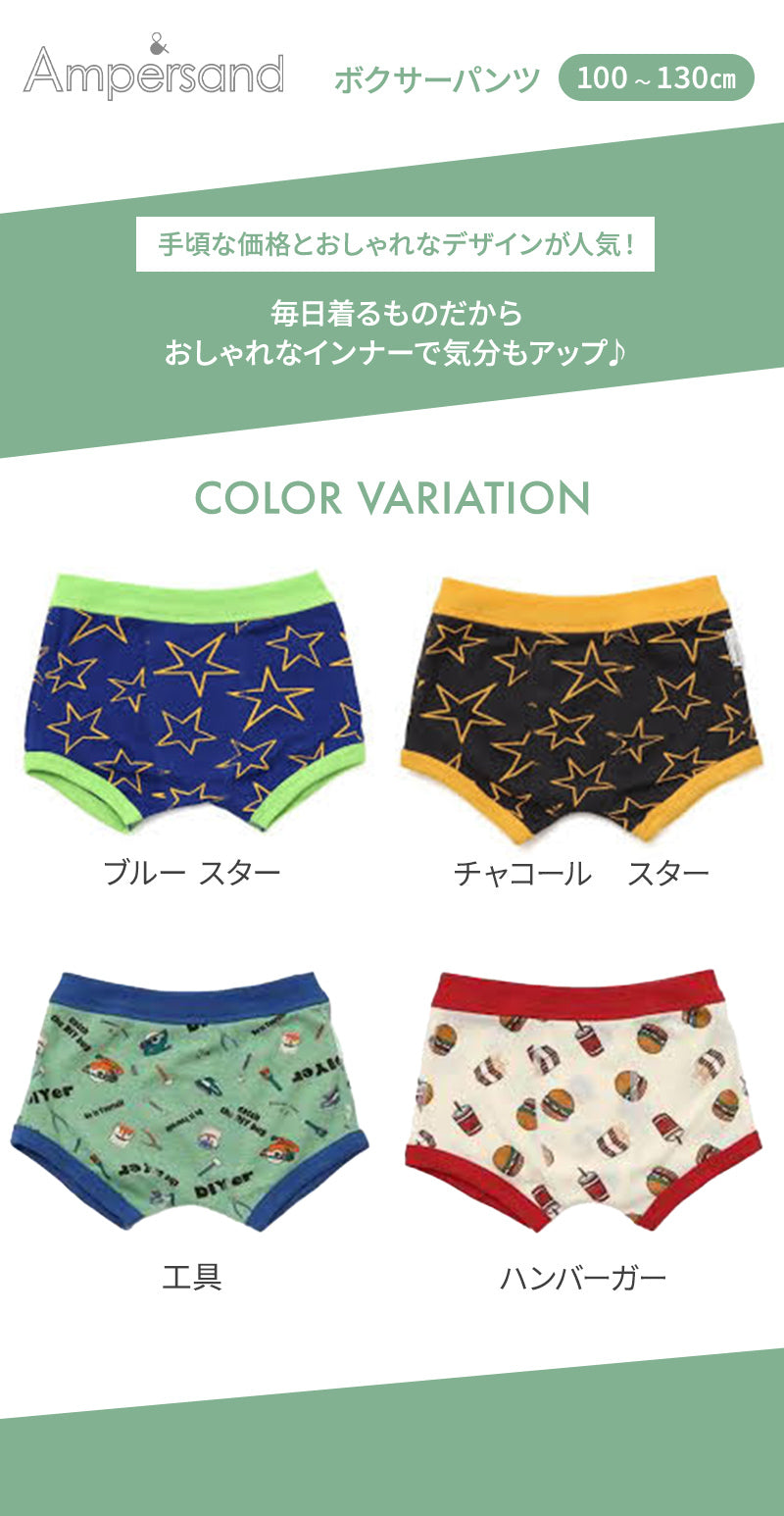 Ampersand (アンパサンド) 総柄 ボクサーパンツ チャコール スター/ブルー スター/工具/ハンバーガー