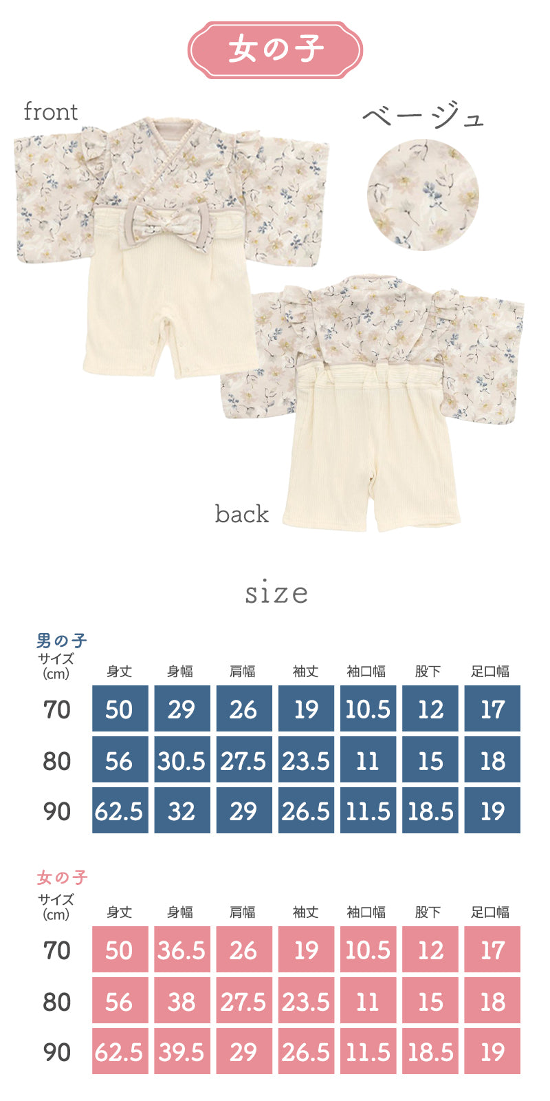 | 【男の子】70cm:身丈50 身幅29 肩幅26 袖丈19 袖口幅10.5 股下12 足口幅17 80cm:身丈56 身幅30.5 肩幅27.5 袖丈23.5 袖口幅11 股下15 足口幅18 90cm:身丈62.5 身幅32 肩幅29 袖丈26.5 袖口幅11.5 股下18.5 足口幅19 【女の子】70cm:身丈50 身幅36.5 肩幅26 袖丈19 袖口幅10.5 股下12 足口幅17 80cm:身丈56 身幅38 肩幅27.5 袖丈23.5 袖口幅11 股下15 足口幅18 90cm:身丈62.5 身幅39.5 肩幅29 袖丈26.5 袖口幅11.5 股下18.5 足口幅19 ※商品により多少の誤差が生じる事がございます。あらかじめご了承下さい。 ※サイズは、平置きの状態で、商品の【外寸】を測定した物です。 |