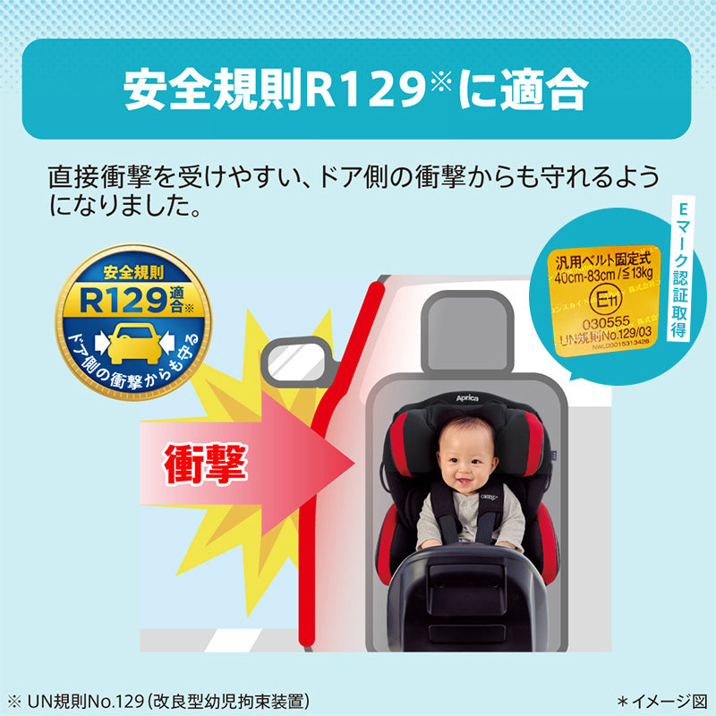UN規則(UN-R129/03)適合 3点式シートベルトのみ装着可能