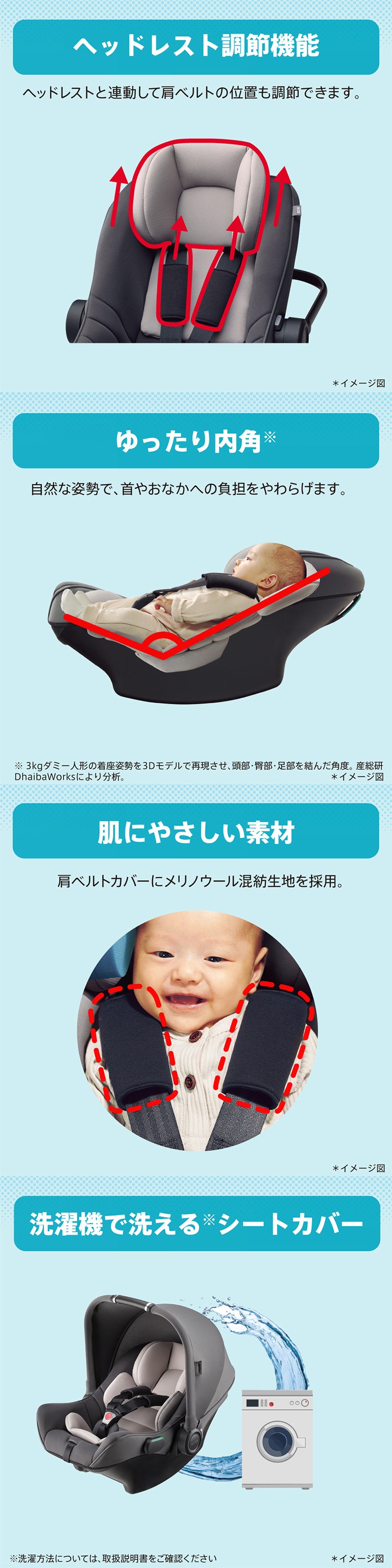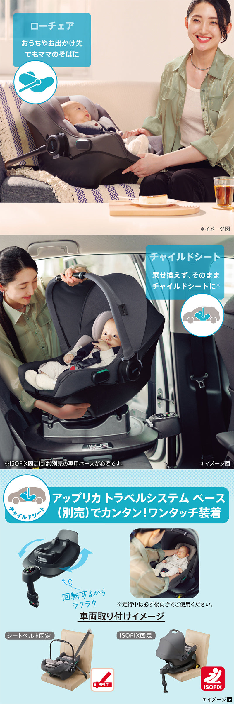 ※ 別売りのアップリカトラベルシステムベース使用で、ISOFIX固定取り付けも可能