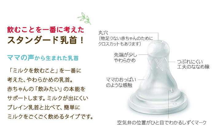 乳首の吸い穴の形状 | スタンダード乳首(丸穴) |