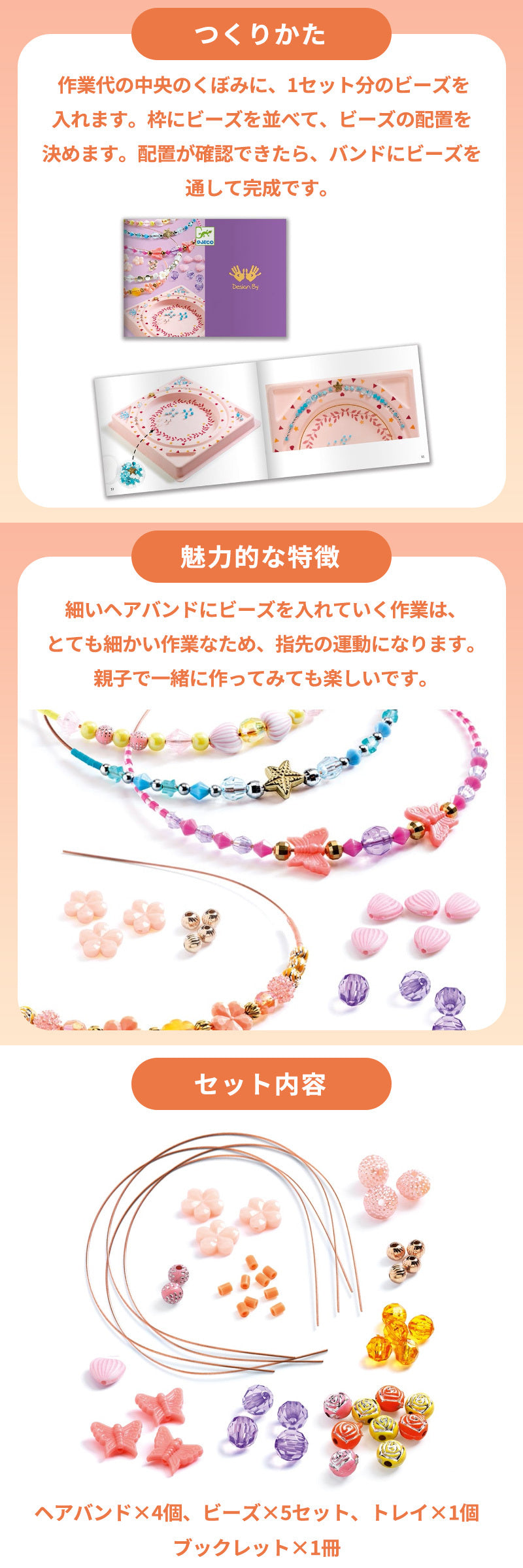 ヘアバンド×4個、ビーズ×5セット、トレイ×1個、ブックレット×1冊 |