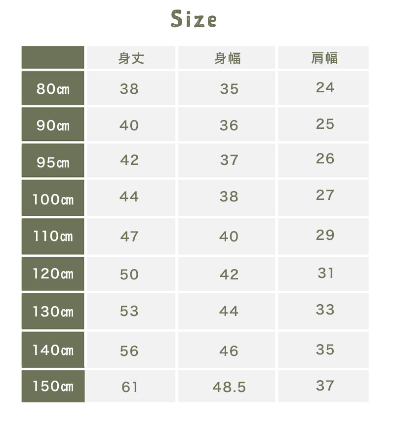サイズ(身丈/身幅/肩幅) |