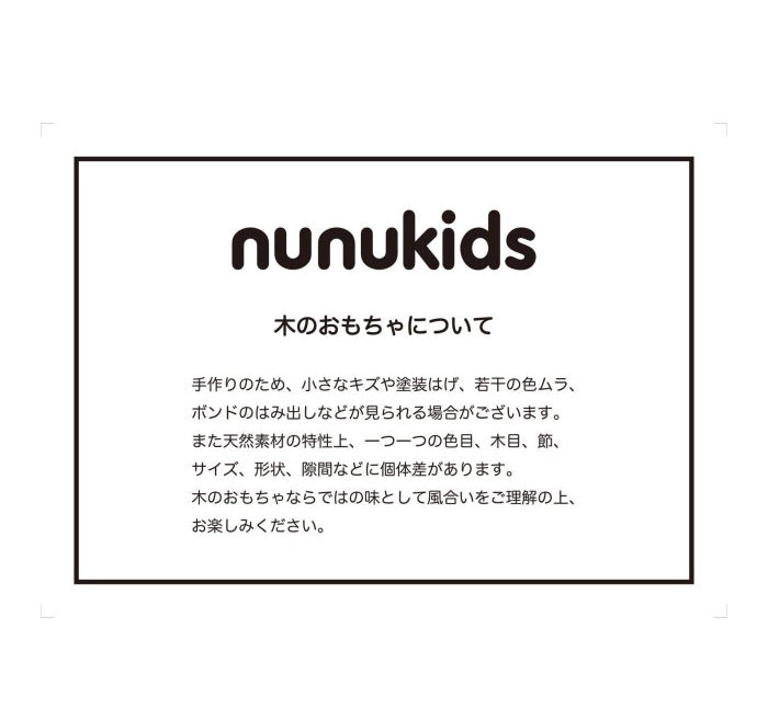 木のおもちゃならではの味として風合いをこ理解の上、 お楽しみください。