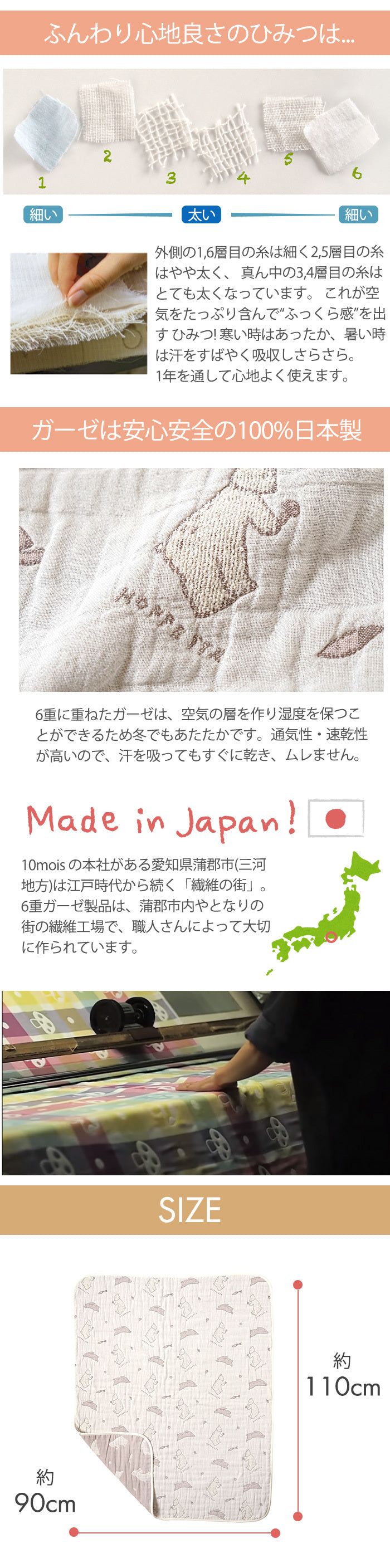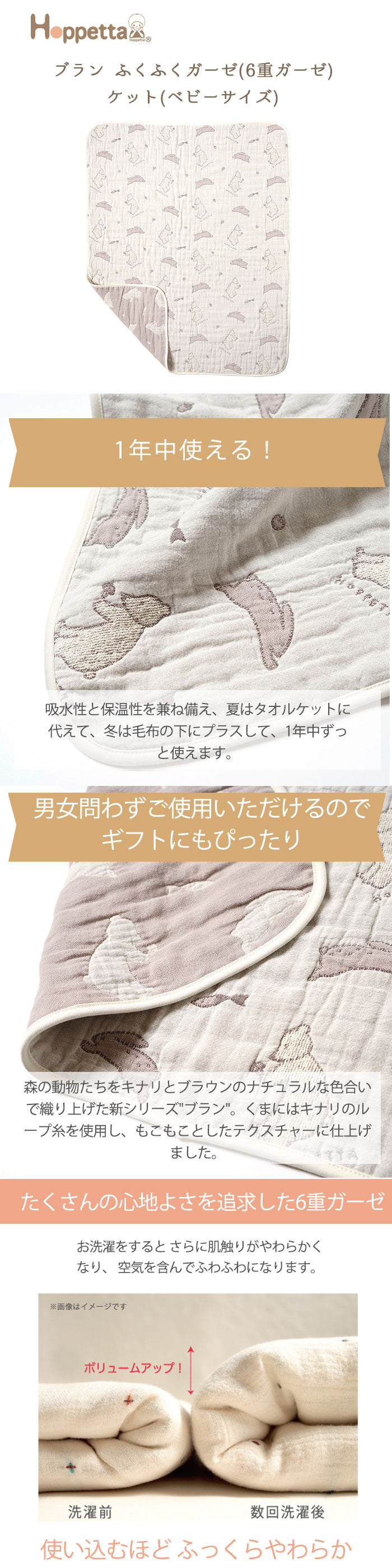 Hoppetta ホッペッタ ブラン ふくふくガーゼ (6重ガーゼ) ケット(ベビーサイズ)