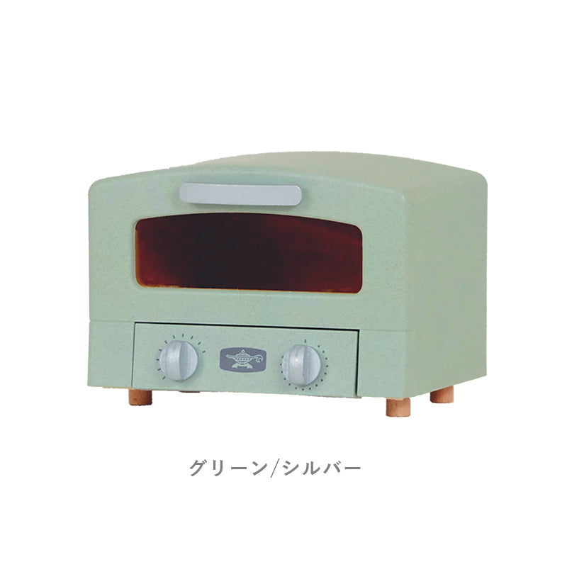 ■ HOPPLדAladdin Graphite Toaster”トースタートイ ■ アラジン グラファイトトースターに ホップルが魔法をかけたら、 ミニサイズの楽しいトイになりました! トースターで大変有名な「アラジン グラファイトトースター」とのコラボ商品が誕生! 細部まで再現されたトースタートイは、まるで本物のよう。 パパやママの真似をして遊べます。 子どもの想像力を育む知育玩具にピッタリでおままごと遊びがもっと楽しくなります。 本体の窓にはオレンジ色と透明のアクル板が付いてきます。オレンジ色のアクリル板を付けると本当に焼いているかのような見た目に。 背面には焼き印でランプマークのロゴ入りです。 インテリアにも馴染むクラシカルなデザインは、遊ばなくなっても小物収納となるのでリビングや玄関、キッチンにぴったりです。 大人気のコロコロシリーズと一緒に使うと、更に遊びの幅が広がります。 |