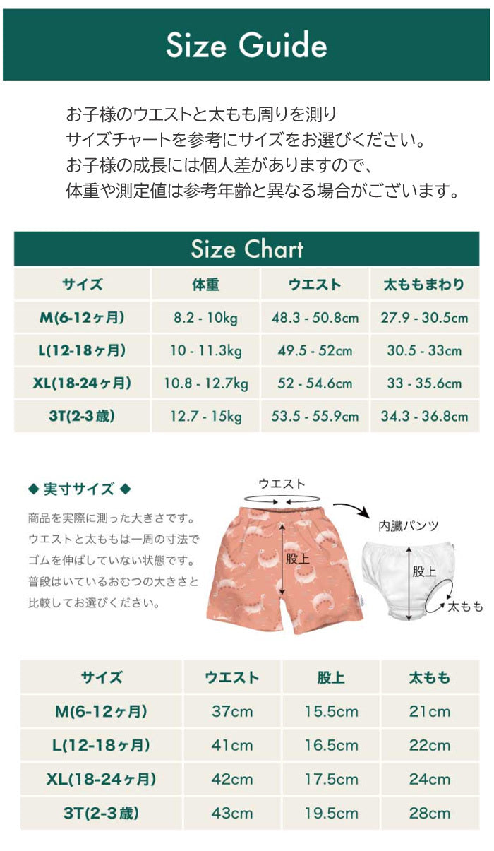 XL(24ヵ月):体重:10.8~12.7kg ウエスト:52~54.6cm 太ももまわり:33~35.6cm