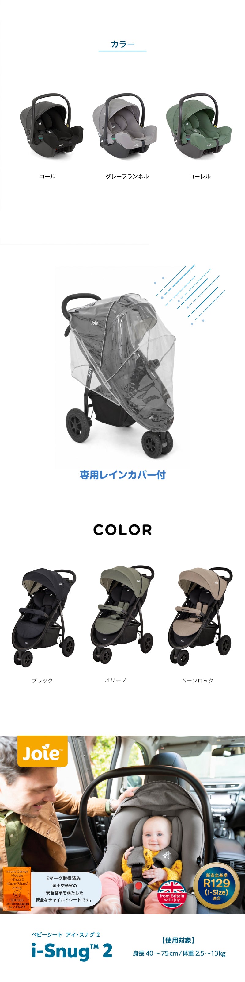 ブリティッシュブランド"Joie(ジョイー)"の1ヶ月から使えるベビーカー 『ライトトラックス3 デラックス』とR129適合ベビーシートアイ・スナグ2(シェール)のセットページです。 |