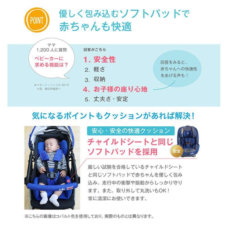 フレーム:アルミニウム シート:ポリエステル ヘッドサポート:ポリエステル 中綿:ポリウレタン47%ポリエステル53% 幌:ポリエステル ベルトポリエステル シートクッション:ポリエステル65%ナイロン35% 中綿:ポリウレタン40%ポリエステル60% ガード:PP タイヤ:EVA ホイール:PP ステップ:PP |