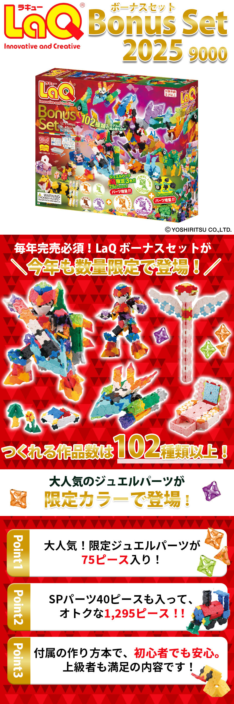 ラキューボーナスセット2025につきまして。 ラキューボーナスセット2025は2025年11月にリニューアルされます。 ※後続品となりますので、引き続きラキューボーナスセット2024の商品ページを使用しています |