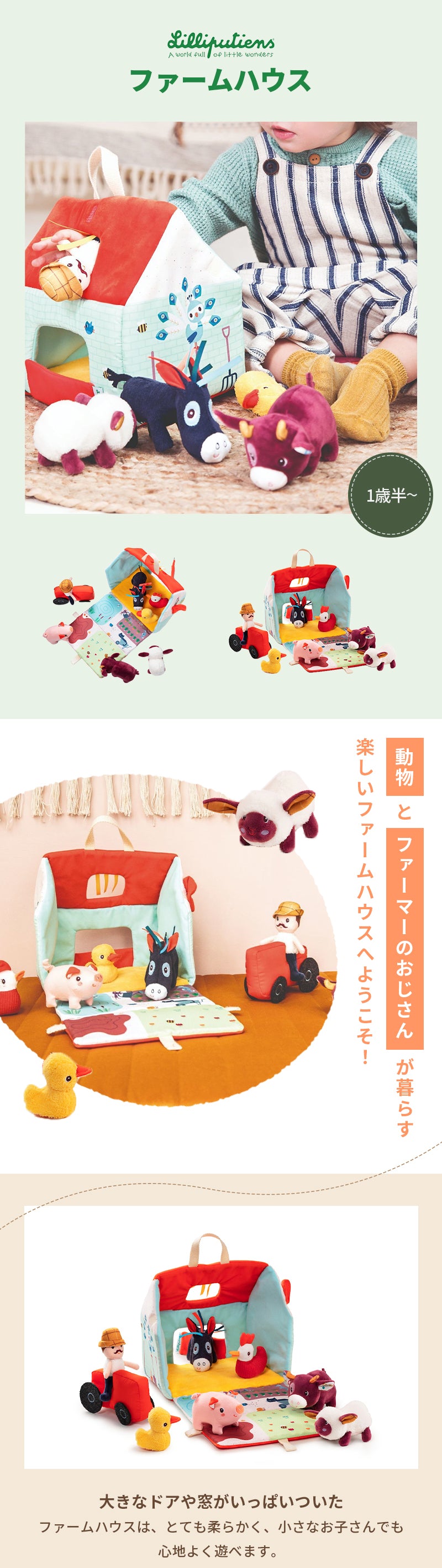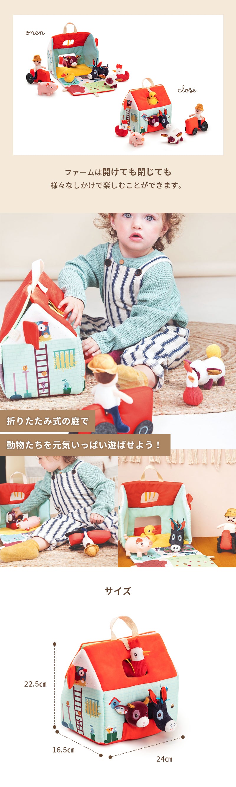 大きなドアや窓がいっぱいついたファームハウスは、とても柔らかく、小さなお子さんでも心地よく遊べます。
