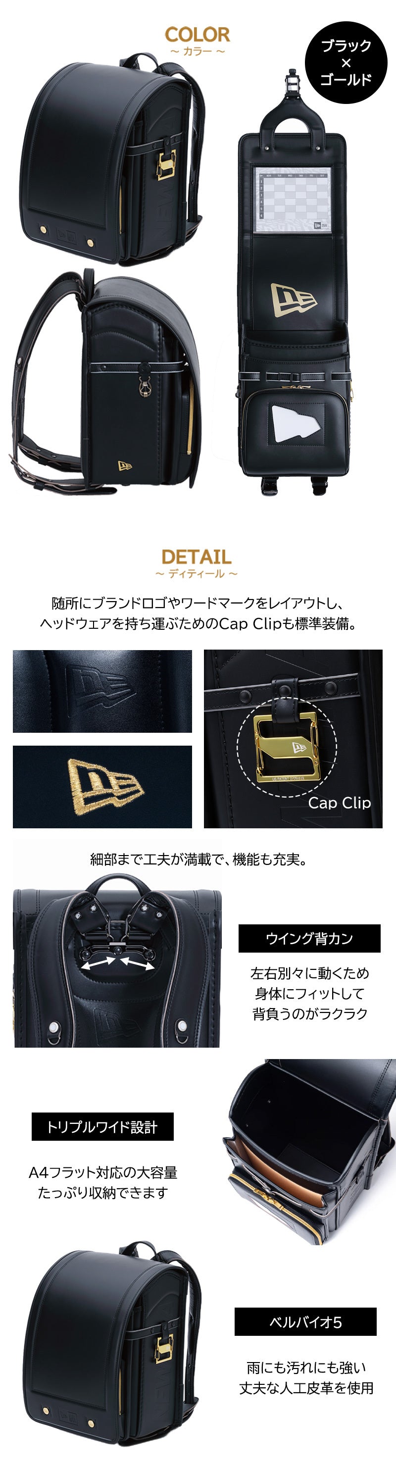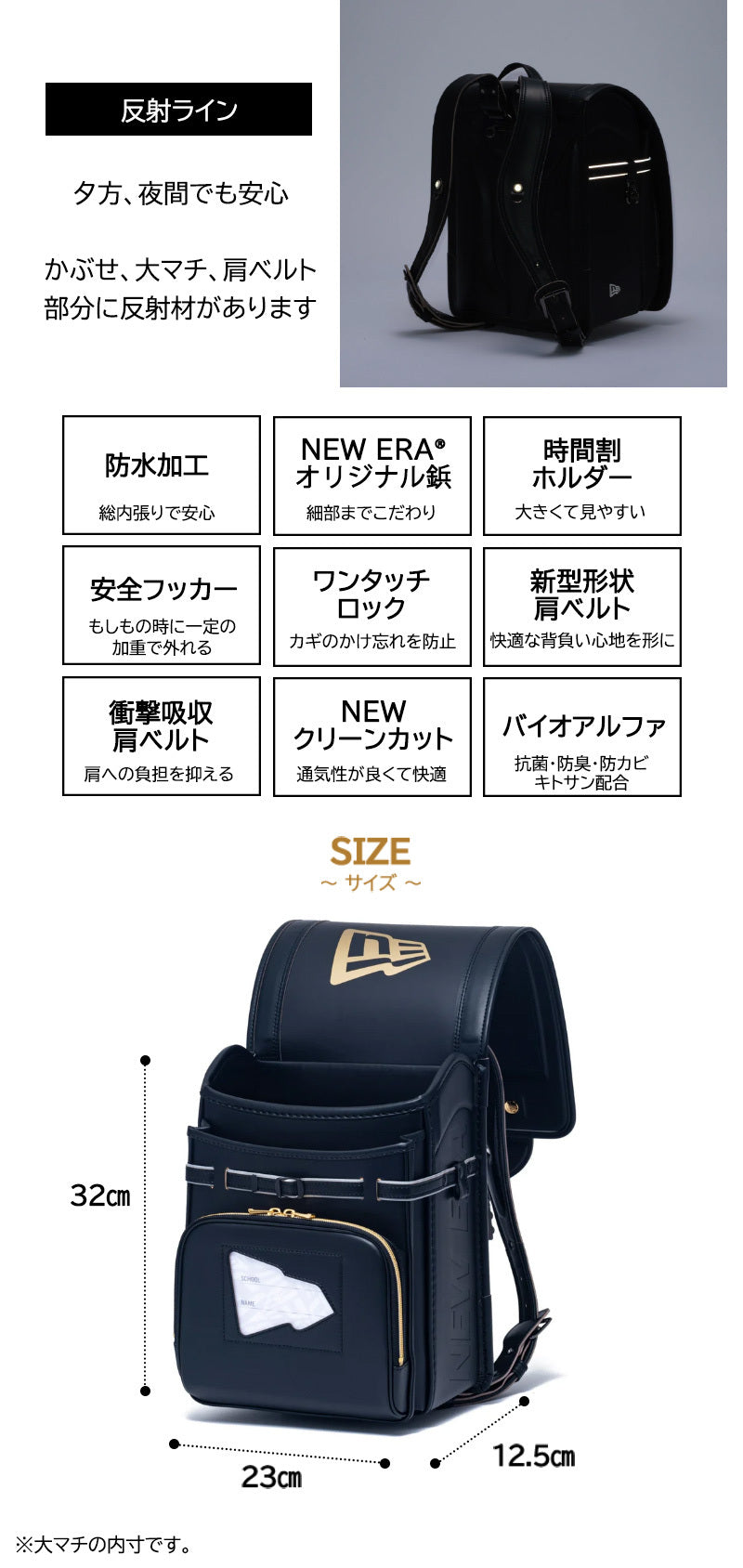 | ヘッドウェアのみならず、近年では高品質なバッグやアパレルもリリースする「ニューエラ」が、ランドセルの展開を開始。 随所にブランドロゴやワードマークをレイアウトし、ヘッドウェアを持ち運ぶためのCap Clipも標準装備。 細部まで工夫が満載で、機能も充実。さらに、日本製で安心の高品質。 ◎ラクラク背負える ◎たっぷり収納 ◎強くて丈夫 ◎防水加工(総内張り) ◎A4フラットファイル対応 ◎NER ERA(R)オリジナル金具 ◎日本製 ・背カン:ウイング背カン(左右別々に動くため身体にフィットします) ・かぶせ:ボックスロゴ型押し、フラッグロゴかぶせ鋲、反射加工 ・かぶせ裏:フラッグロゴプリント、時間割表 ・大マチ:<左側>NEW ERAロゴ型押し、反射材、Cap Clip <右側>ナスカン(30kg程度の負荷がかかると自動的に外れるよう設計)、フラッグロゴ刺繍 ・肩ベルト:丸形反射カシメ ・6年間修理保証付き(入学年の4月より6年間) ※お使いの画面環境により画像の色味に多少の差異が生じます。予めご了承ください。 |