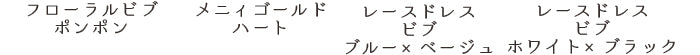 | 各商品サイズ・生地 | [キャンディストライプ] ■サイズ:H28×W23cm ■首回り:約27cm ■生地:上/コットン100% 下/ポリエステル100% [シャイニードレス] ■サイズ:W27×H28cm ■首回り:約27cm ■生地:ポリエステル100% [チュールレースドレス] ■サイズ:W27×H28cm ■首回り:約27cm ■生地:ボディ/コットン100% チュール/ポリエステル100% [チュチュスタイ] ■サイズ:W27×H28cm ■首回り:約27cm ■生地:ポリエステル100% [バイカラーポンポン] ■サイズ:W27×H28cm ■首回り:約27cm ■生地:コットン100% [バルーン] ■サイズ:H28×W23cm ■首回り:約27cm ■生地:上コットン100% 下ポリエステル100% [バレリーナスタイ] ■生地:ボディ / ポリエステル20% チュール / ナイロン97% ポリエステル3% ■BOX:H21×W21cm×D2.5cm [ビッグリボン] ■サイズ:W27×H18cm ■首周り:約33cm ■生地:コットン76% ポリエステル24% [フローラルビブポンポン] ■サイズ:W27×H28cm ■首回り:約27cm ■生地:コットン100% [レースドレスビブ] ■サイズ:W27×H28cm ■首回り:約27cm ■生地:ボディ/コットン100% チュール/ポリエステル100% [レオパードバルーン] ■サイズ:H28×W23cm ■首回り:約27cm ■生地:上コットン100% 下ポリエステル100% |