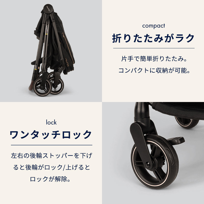 デザイン先進国、オランダ生まれのプレミアムブランド〈nuna(ヌナ)〉 多くのデザインアワードで評価され、世界80ヵ国以上で愛用されているベビー用品ブランドです。 オランダ・デザインの特徴である「美しいフォルム」「創意工夫」に刺激を受け、 優れた製品を作り出すことに情熱を注いでいます。お子さまとの喜びに満ちあふれた貴重な時間をお楽しみください。 軽量&360°回転機能がついた両対面式ベビーカー。 ワンプッシュで4つの車輪が360°回転し、スムーズな操作性でお出かけ。 片手で折りたたんだ後も自立することができ、コンパクトに収納が可能。 耐荷重10kgの大容量バスケット。お出かけに必要なものが全て収まります。 お子さまの成長に合わせてリクライニング4段階調節可能です。 ・ハンドルの高さ3段階調節可能。 ・シートリクライニングが4段階調整可能。 ・横移動ができるドリフト機能を搭載。 ・後輪ストッパー2箇所搭載。 ・イクサ カップホルダーの取付可能。 |