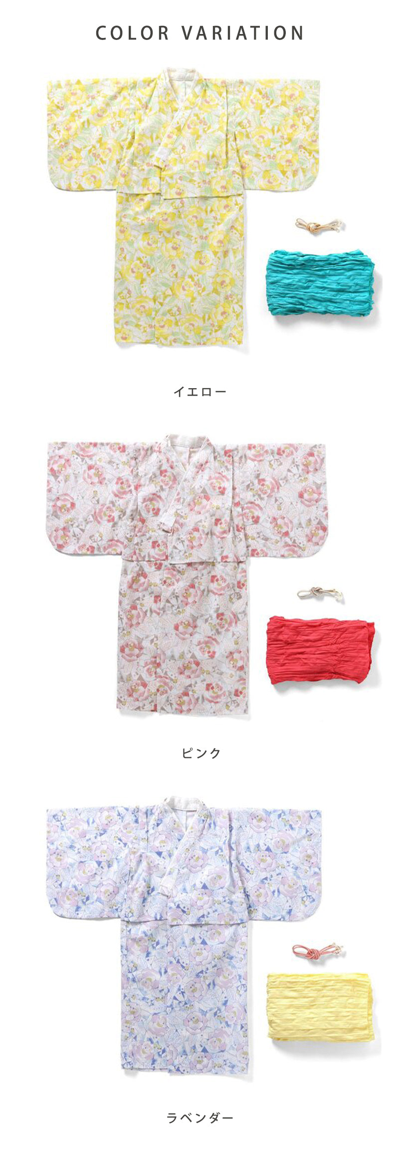 Seraph (セラフ) 簡単に着られる大花柄浴衣セット 110cm~M イエロー/ピンク/ラベンダー