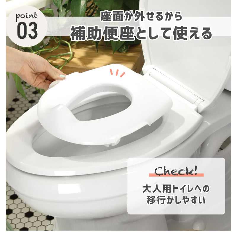 便座部分は取り外して洗うことができ、大人用の便座にのせれば補助便座としてお使いいただけます。