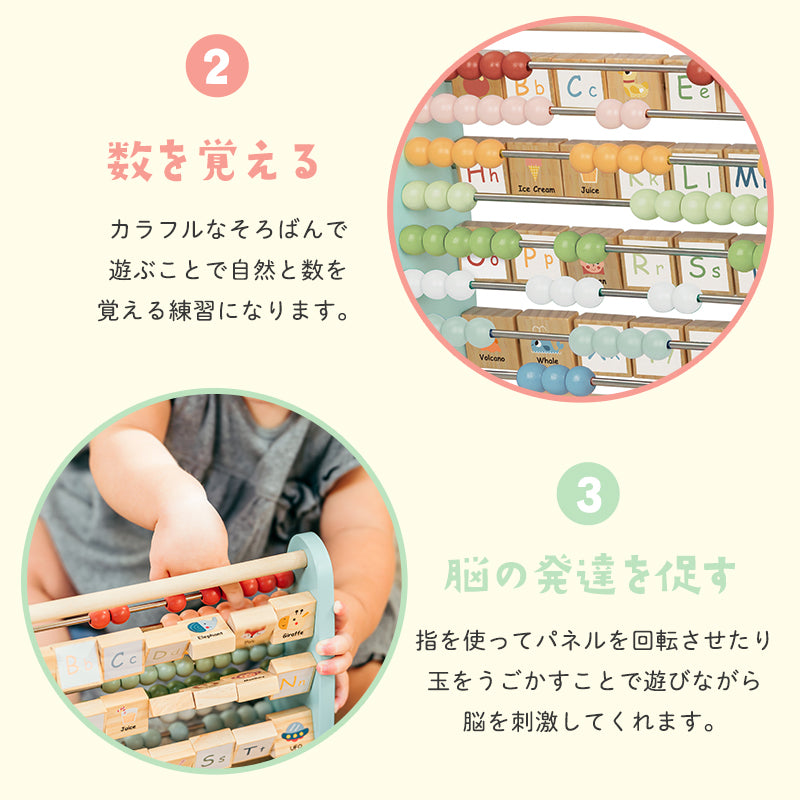 アルファベットの大文字と小文字を覚えながら、どうぶつたちや物の名前も英語で学ぶことができます。 カラフルなそろばんで遊ぶことで、自然と数を覚える練習になります! 〇TOOKY TOY(トーキートイ)〇 More than a toy!(おもちゃ以上の存在)をスローガンに2004年スタート。 世界43か国以上で愛されているやさしい色合いの木製玩具ブランドです。 小さな子どもたちが大好きなボール落としや指先を使う遊びを通じて集中力や想像力などを育めるよう 知育玩具の要素を盛り込んだおもちゃを開発しています。 |